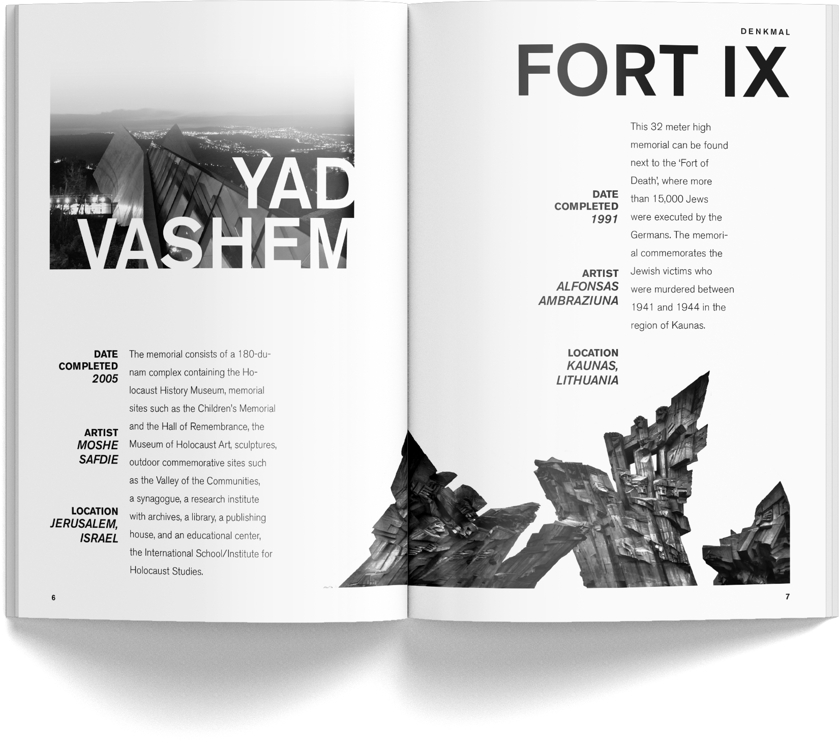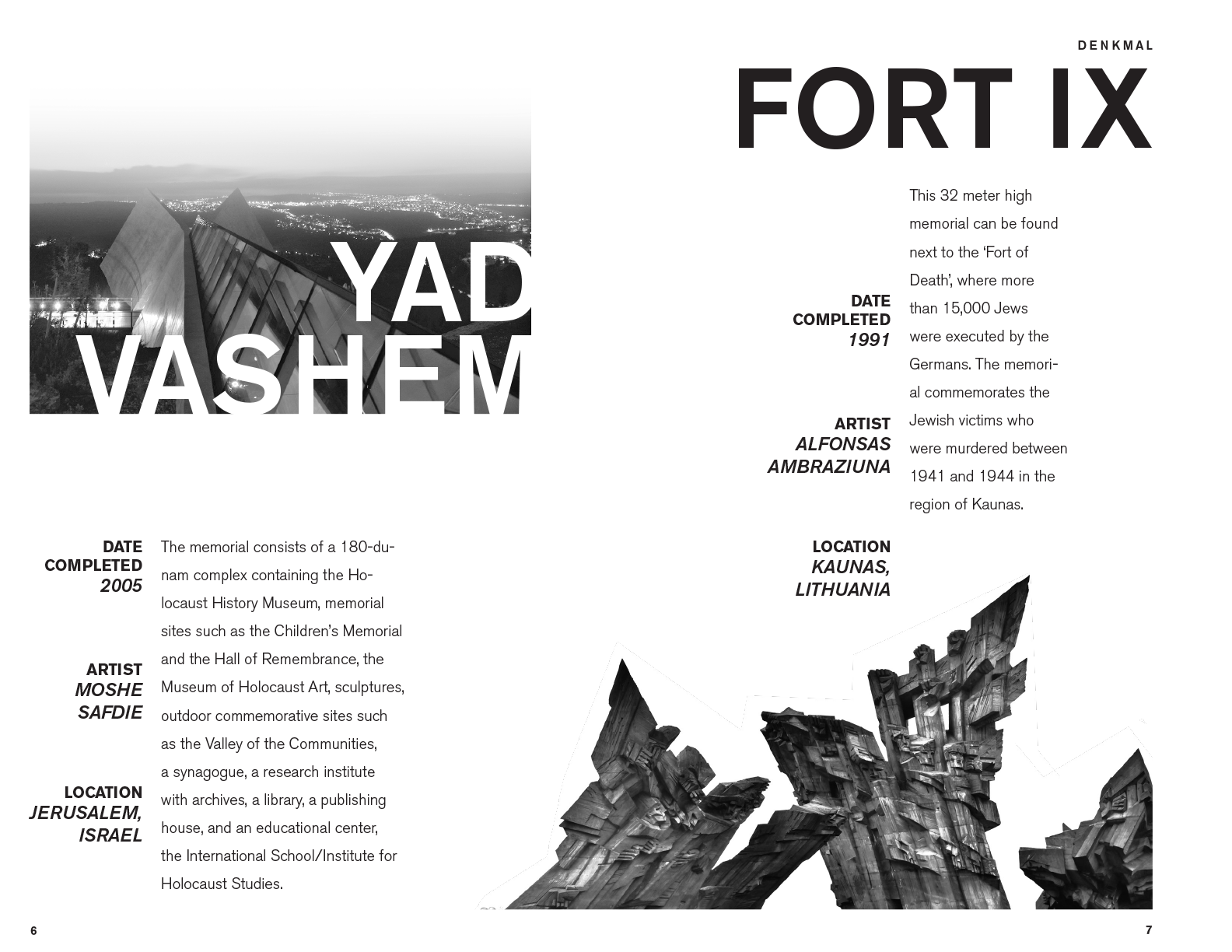 "Monument" - A personal zine focusing on the ways in which art stems from tragedy. A collection of memorials around the world that I've visited.